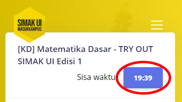 Kerjakan soal TPS dan TKA sesuai dengan waktu yang telah ditentukan oleh sistem. Sisa waktu dapat dilihat di bagian kanan atas pada soal