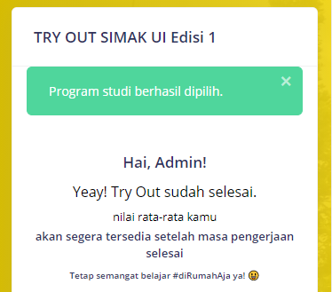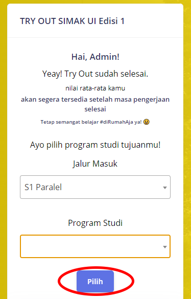 Setelah soal TPS dan TKA selesai kamu kerjakan. Hasil ujianmu akan langsung keluar dan pilih universitas dan jurusan yang ingin kamu tuju
